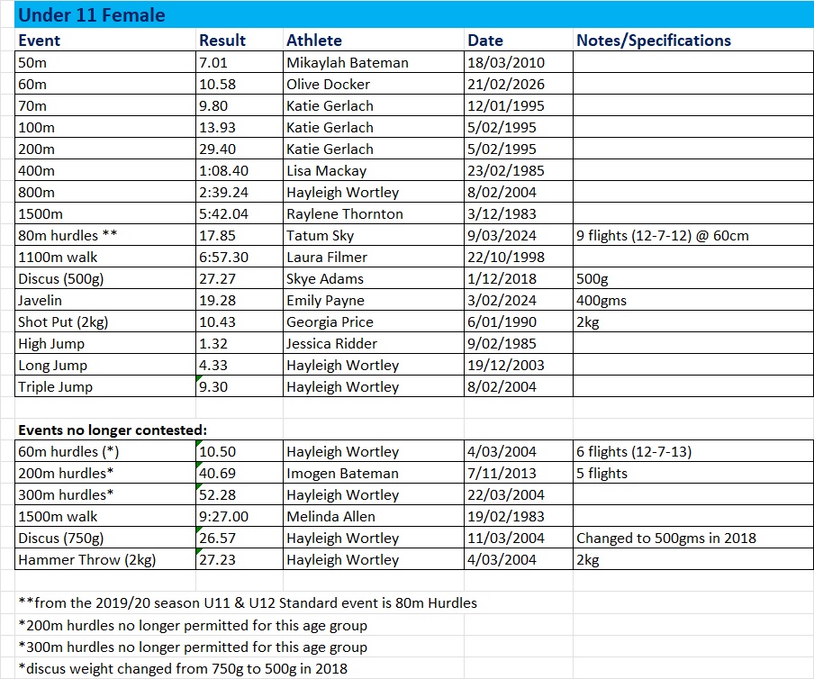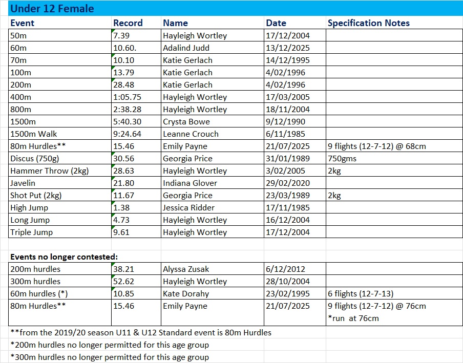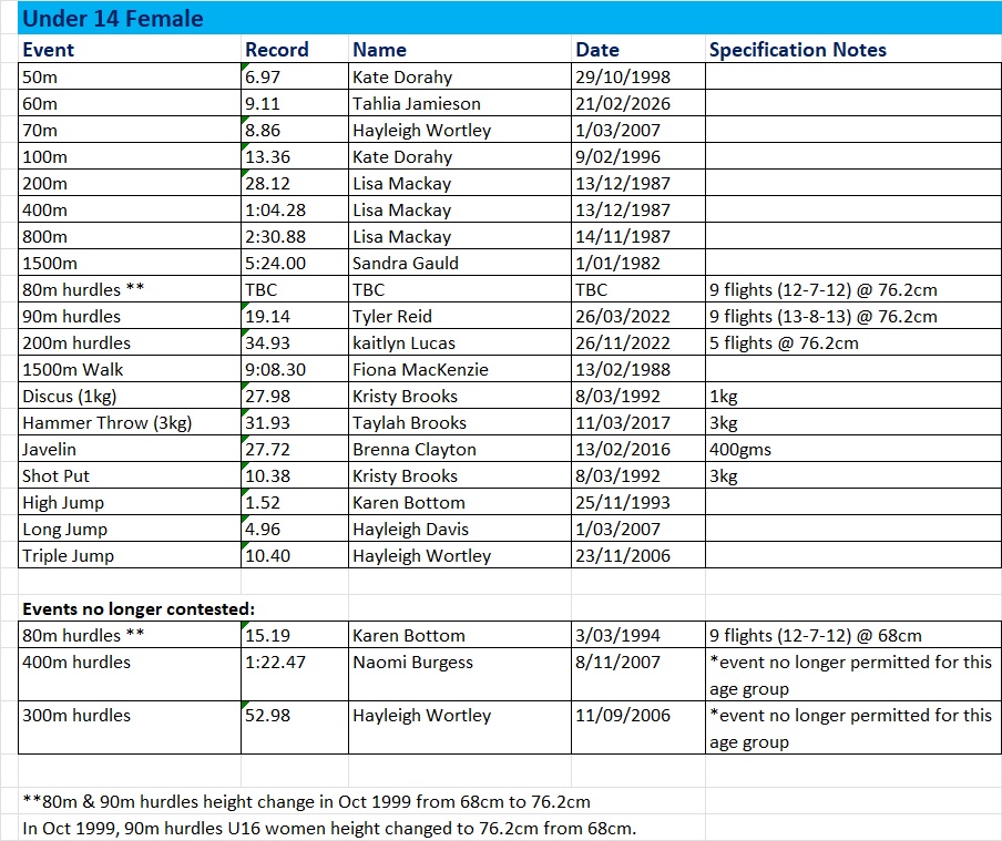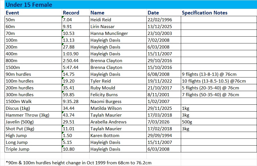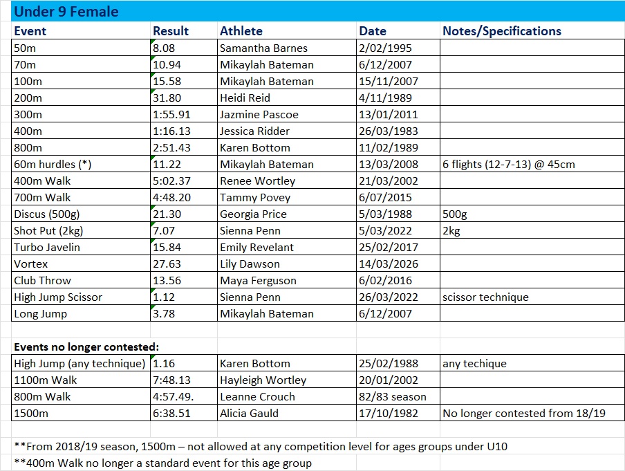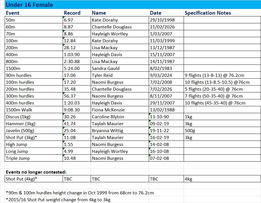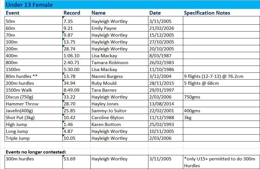 Club Records – Female Current at March 2026 Share this: Share on X (Opens in new window) X Share on Facebook (Opens in new window) Facebook Like Loading...